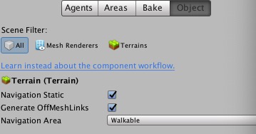 在两块不相连的寻路区域,可以通过off MeshLink来连接,这样就可以在不烘焙的情况下,连接两块已经烘焙过得寻路区域。