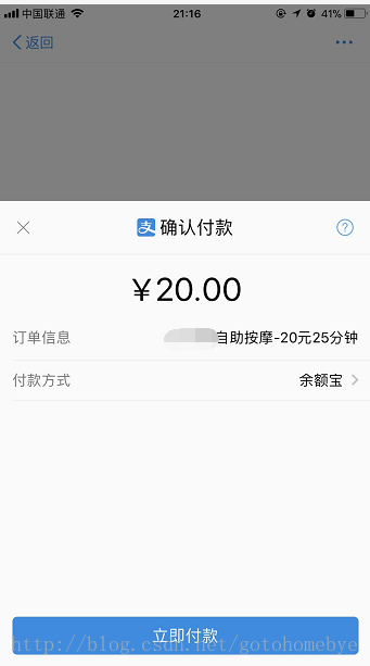 aliPayMap.put("subject", "xxx自助按摩-" + remark);// 商品的标题/交易标题/订单标题/订单关键字等