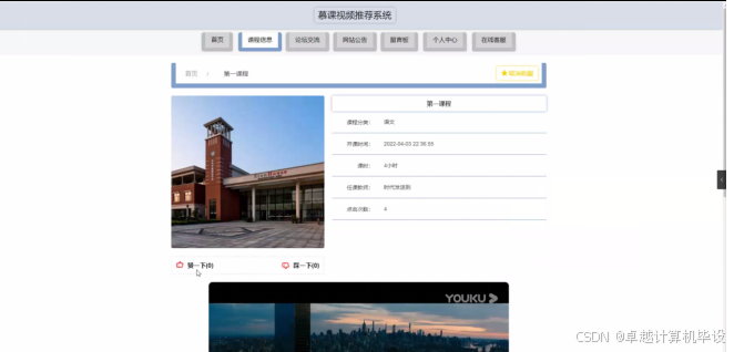课程推荐:根据用户的浏览历史和偏好,系统自动推荐相关的慕课视频,提高推荐的准确性和个性化程度。