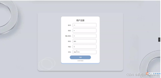 系统注册:在系统注册页面的输入栏中输入用户注册信息进行注册操作,系统注册页面如图5-2所示: