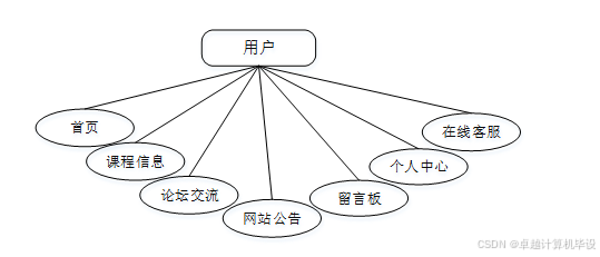 (1)用户登录权限,可以查看系统前台的课程信息,并进行收藏操作,修改个人资料,还可以查看论坛交流、网站公告等信息。