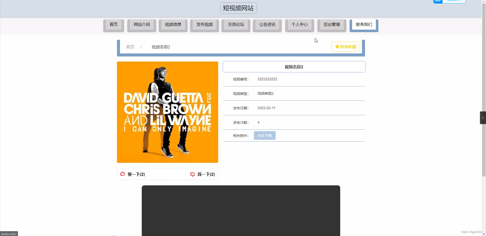 - 视频信息管理:记录短视频的相关信息,包括标题、描述、点赞数等,并进行数据统计和分析。