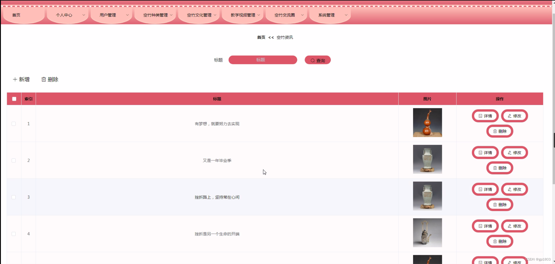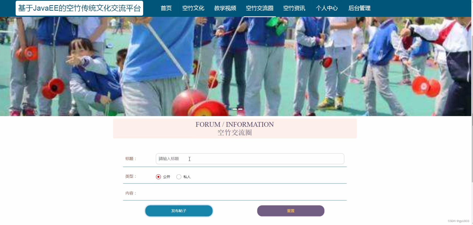 研究意义: 通过建立基于JavaEE的空竹传统文化交流平台,可以有效推广和传播空竹文化知识,激发人们对传统文化的兴趣和热爱,提高空竹文化的传承和保护水平。同时,该平台还可以促进空竹爱好者之间的交流与合作,打破地域限制,拓宽空竹文化的影响范围,为空竹文化的发展注入新的活力。