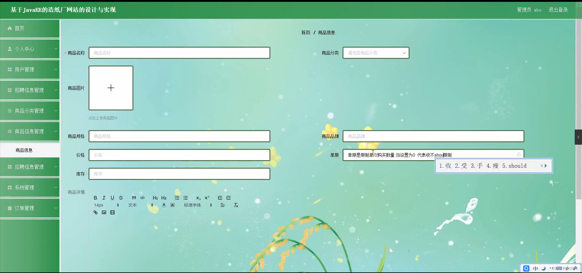 - 构建一个商品分类和信息发布系统,方便造纸厂销售产品和与客户进行交流。