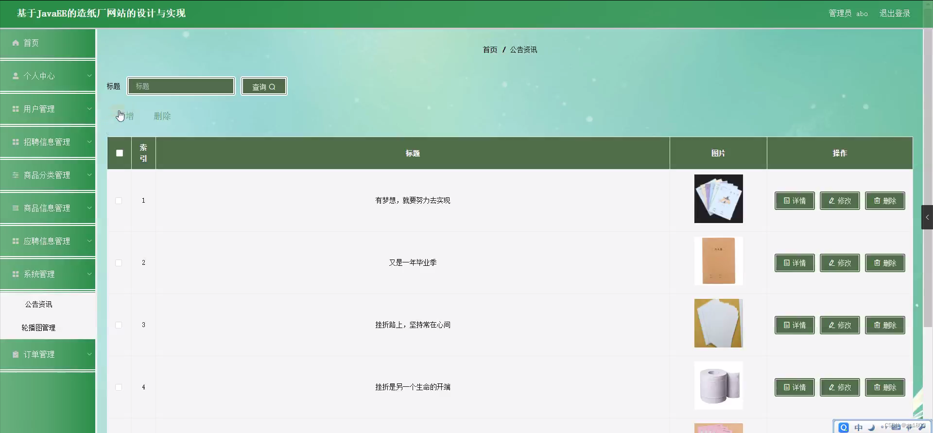 - 实现对招聘信息的发布和管理,方便造纸厂招聘新员工,并提高招聘效率。