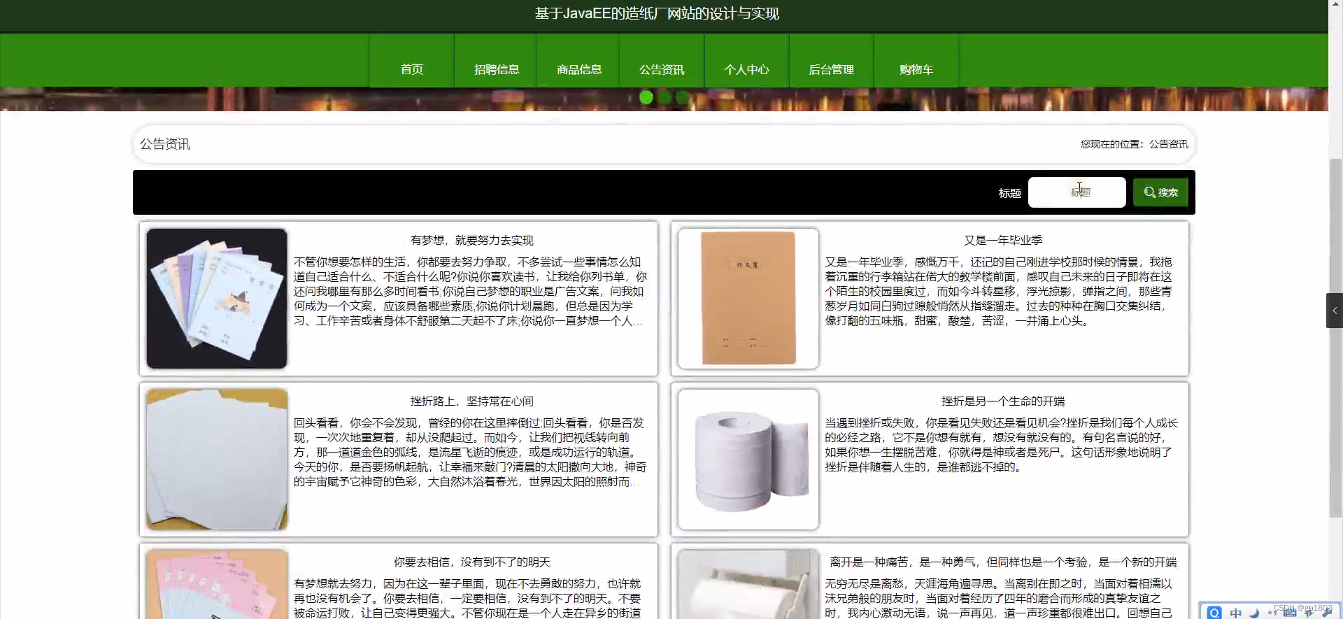 研究目的: 本研究旨在通过构建基于JavaEE的造纸厂网站,实现以下目标:
