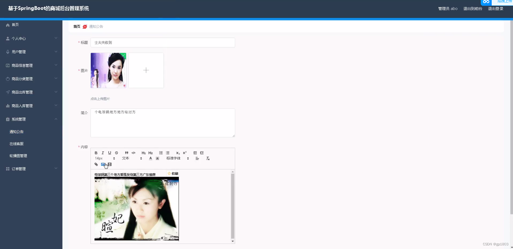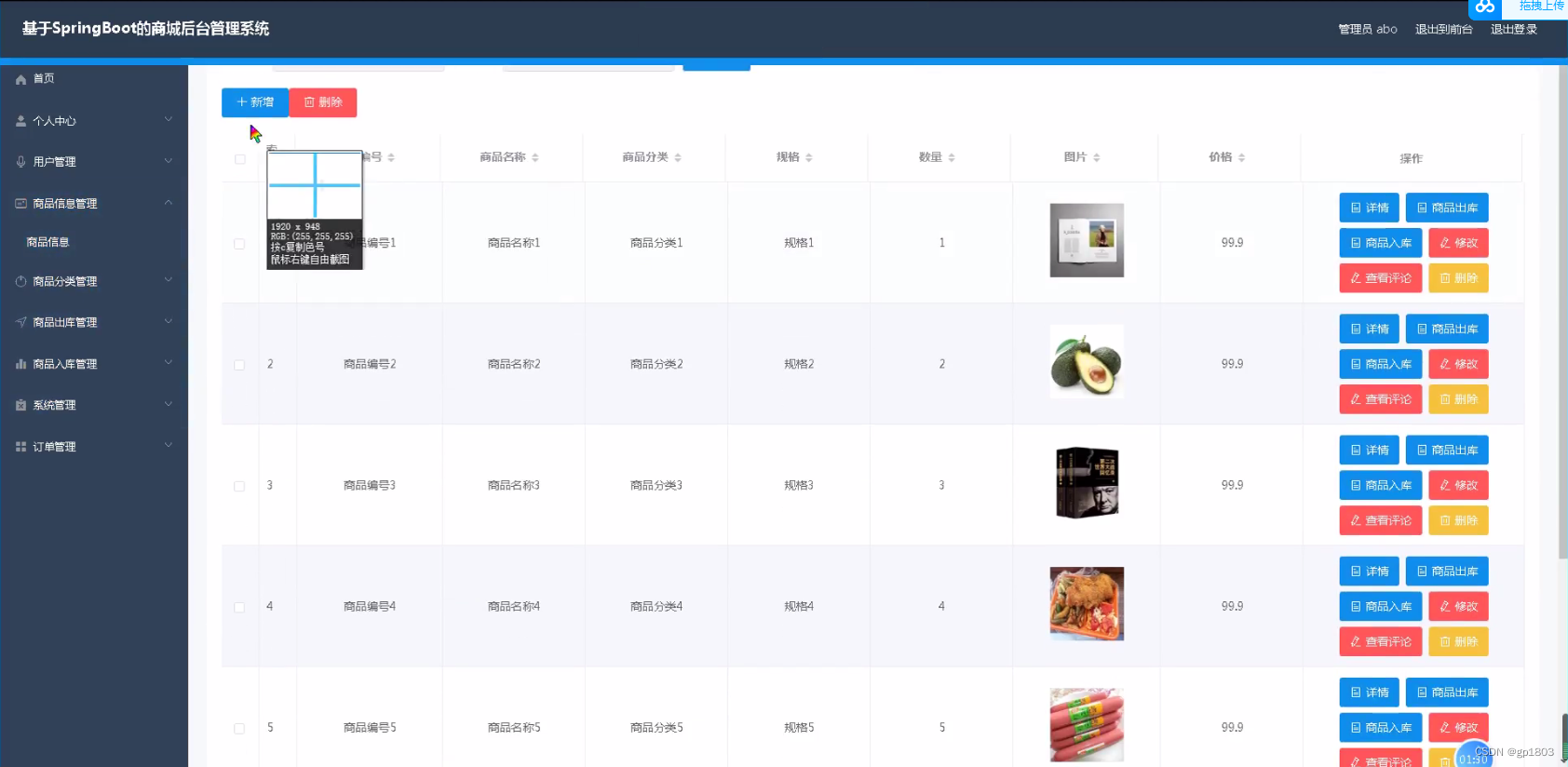 - 商品信息管理:包括商品的添加、编辑、删除等功能,以及商品图片、价格、库存等信息的管理和展示。
