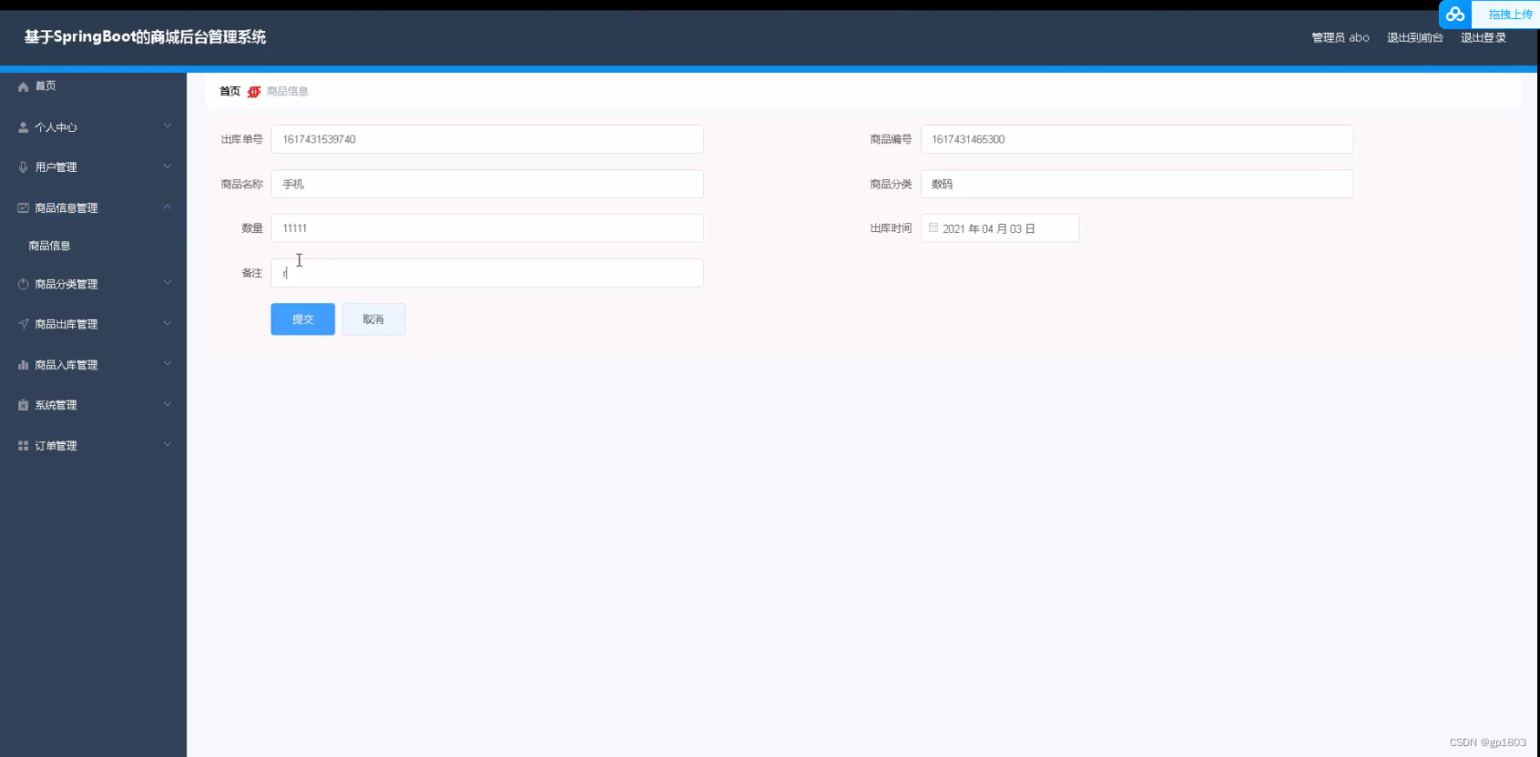 研究目的: 本研究旨在开发一个功能全面、易用性强的商城后台管理系统,以满足商家对于商品管理、订单处理、库存管理等方面的需求。具体目标包括:提供便捷的用户管理功能,方便商家进行员工权限控制;实现高效的商品信息管理,包括商品的添加、编辑、删除等功能;优化商品分类管理,提供多维度的分类方式,方便商家进行商品归类和展示;实现商品出库和入库的管理,确保库存的准确性和及时性。