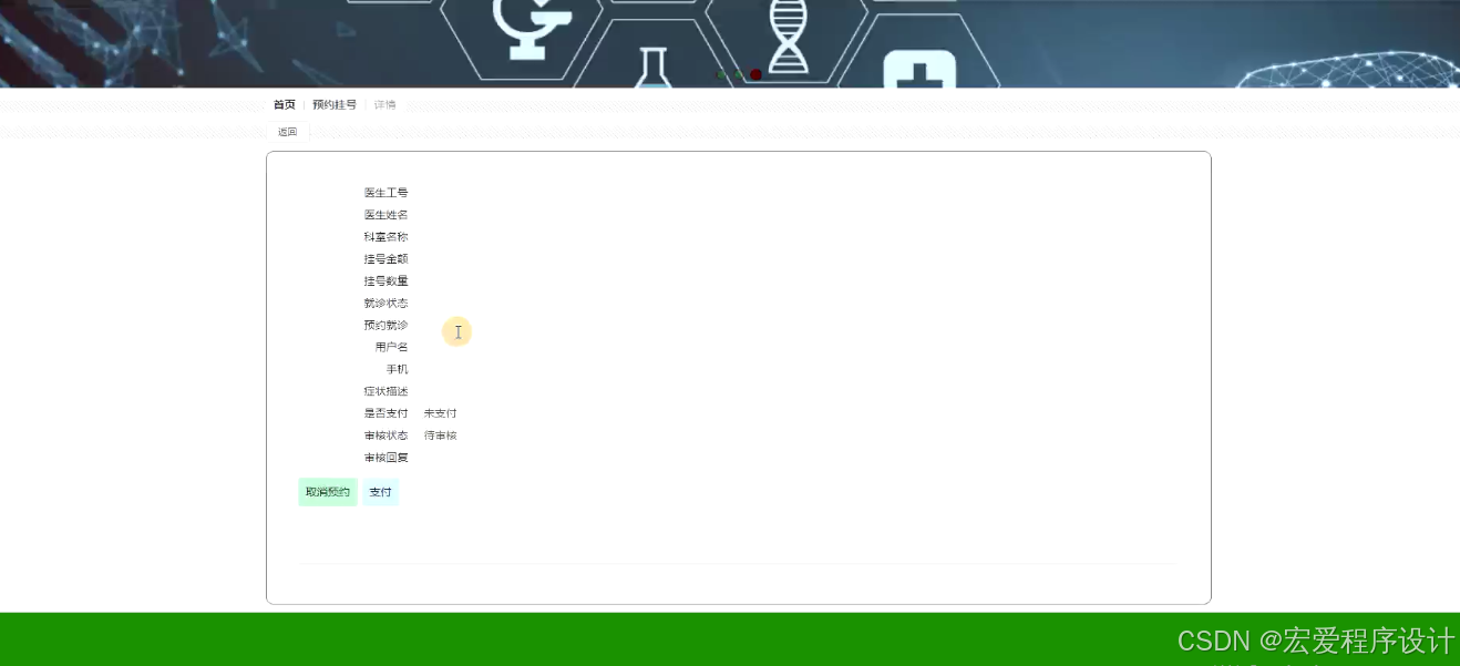 - 预约挂号:提供在线预约挂号服务,支持患者根据需求选择合适的科室、医生和时间段进行预约,同时提供预约确认和提醒功能。