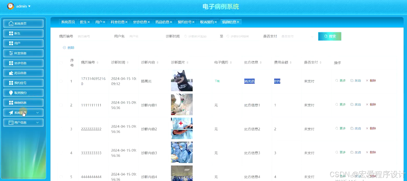 - 病例信息管理:实现病例信息的录入、存储、查询和打印等功能,确保病例信息的完整性和准确性,支持医生在诊疗过程中快速获取患者历史病例。