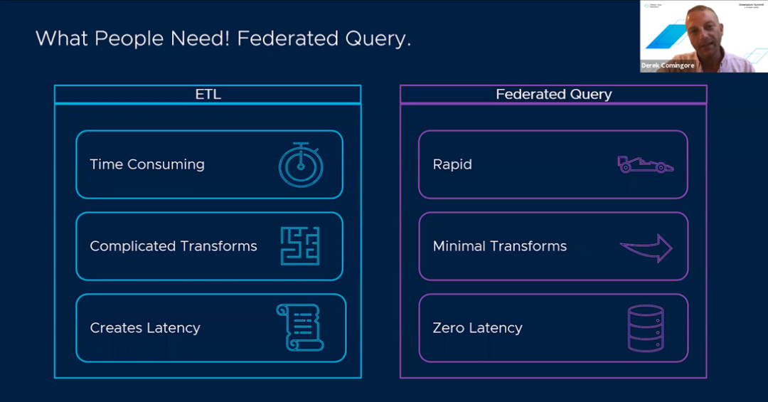 Greenplum峰会精彩仍在继续,因为时差无法观看直播的小伙伴可以在VMware学习专区(http://vmwarelearningzone.vmware.com/)观看活动视频。第二周的专题内容是“联邦分析”。联邦分析可以满足用户对来自多个数据源的分析的需求,帮助用户解决业务挑战。让本文带你回顾一下峰会第二周主题的精华内容吧!