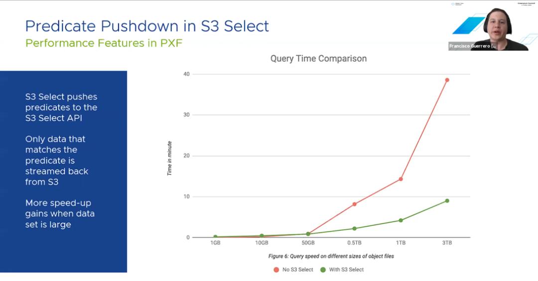 是什么联邦查询成为可能?在演讲中,Francisco Guerrero解释了Greenplum是如何在整个集群中分配查询,PXF是如何管理并行化的数据读写操作。为了提高性能,PXF具有谓词下推的功能,可过滤远程系统上的查询结果。