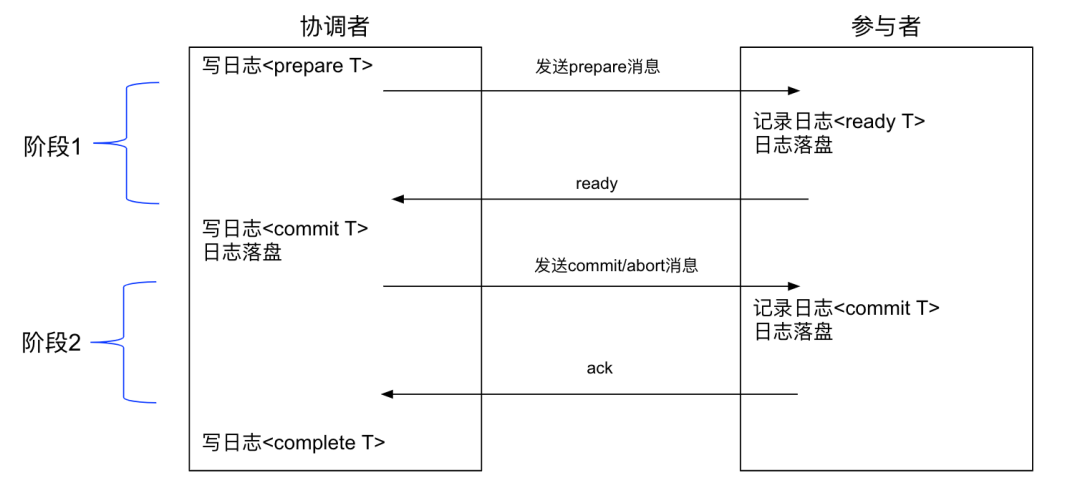 需要注意的是,参与者收到协调者发送来的prepare消息,在应答ready之前,必须保证该事务所有操作的日志记录已经被刷入稳定存储器。