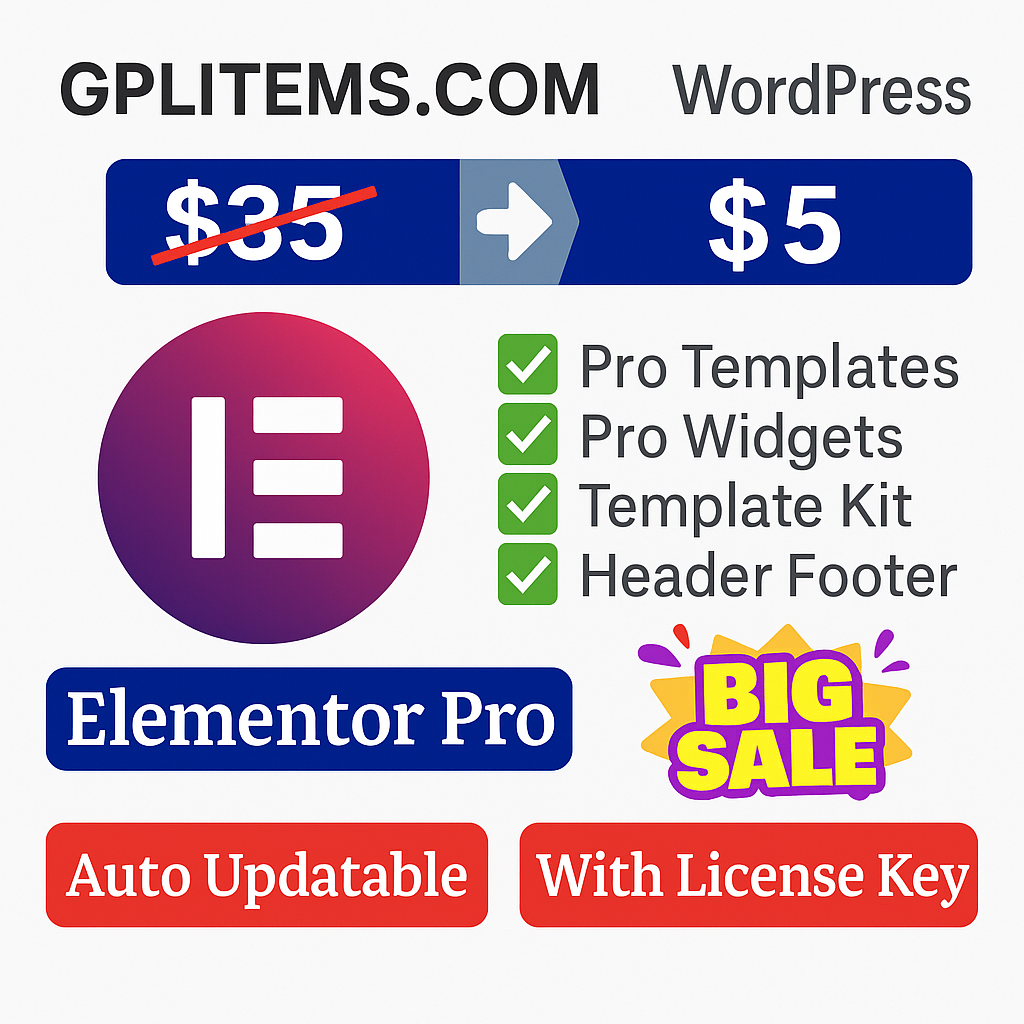 Thanks to GPL licensing and platforms like gplitems.com, you no longer need to compromise. You get a stable, powerful version of Elementor Pro — at a fraction of the price, and with GPL-compliant premium upgrades you can rely on.