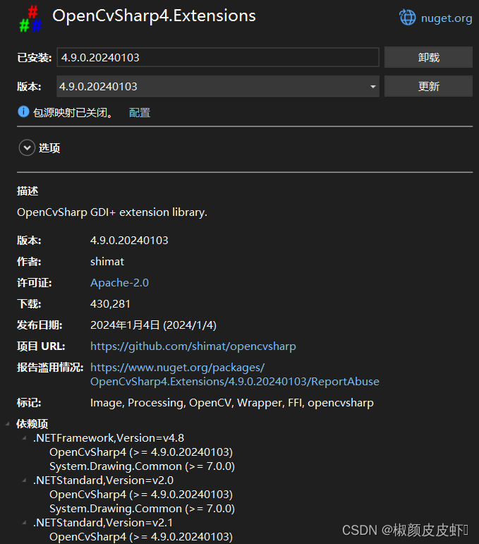 <PackageReference Include="OpenCvSharp4.Extensions" Version="4.9.0.20240103" />