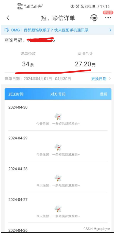 然后选择短彩信,按月查询就行了,真贵呀,我还连发了两个月