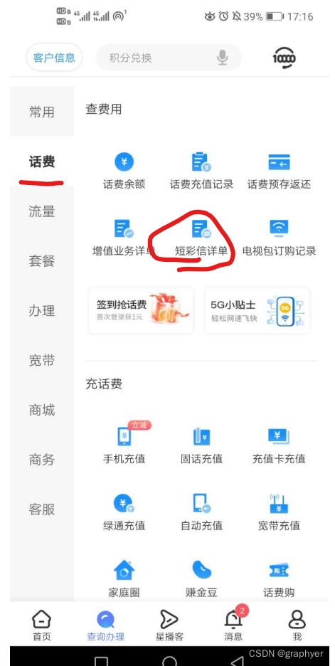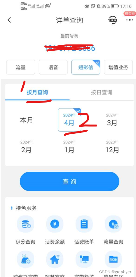 选择查询办理-话费-短彩信详单