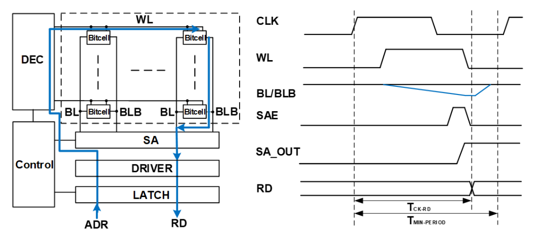那么这个min period,就是SRAM本身的delay(CLK->RD)再加上BL/BLB预充电的时间。
