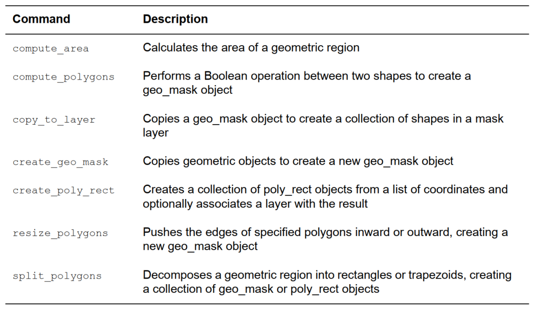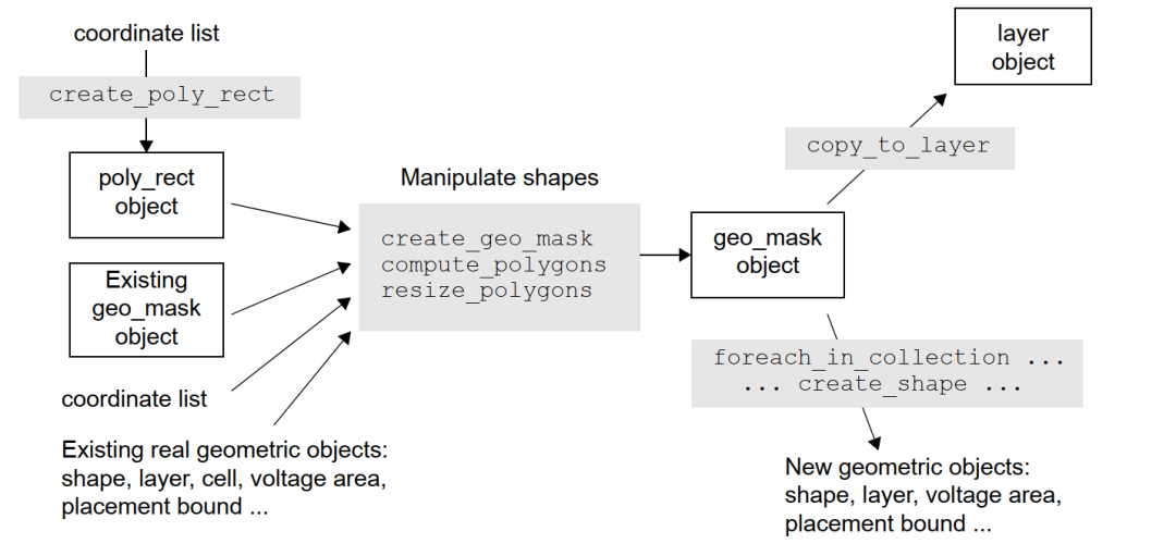 另外,对于图形处理命令,除了create_poly_rect, 会产生poly_rect之外,象其他的polygon操作命令,所产生的objec都属于geo_mask。