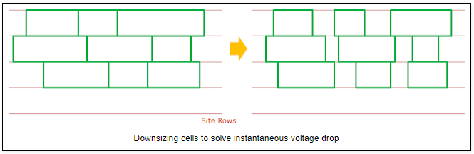 downsize不仅可以降低cell的功耗。留出来的空位也可加以利用。比如,加上decap cell。