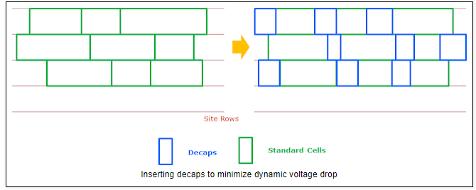 decap cell对于动态功耗意义非凡,尤其是decap对于与其附近,且相同row之内的cell的作用,会非常有效。
