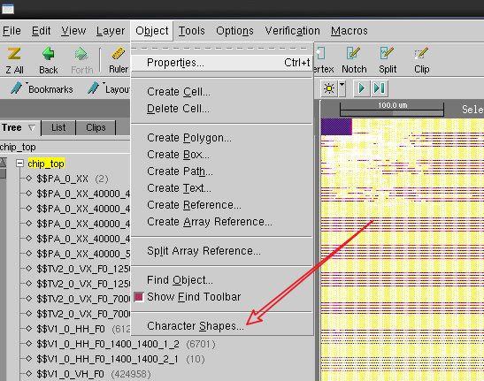菜单中,单击 Object->Character Shapes