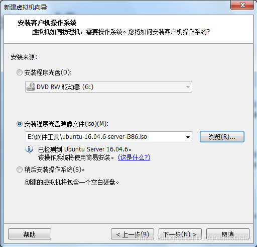 3、选择“安装程序光盘映像文件(iso)”,点击浏览,选中ISO文件,下一步