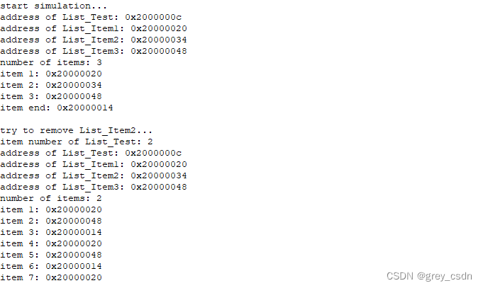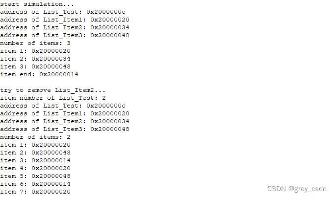 关于链表的测试部分可以有很多,这个教程中用到的不是很多。针对这个仿真工具我了解不多,因此除了Memory的查看之外我额外增加了辅助显示的测试代码。