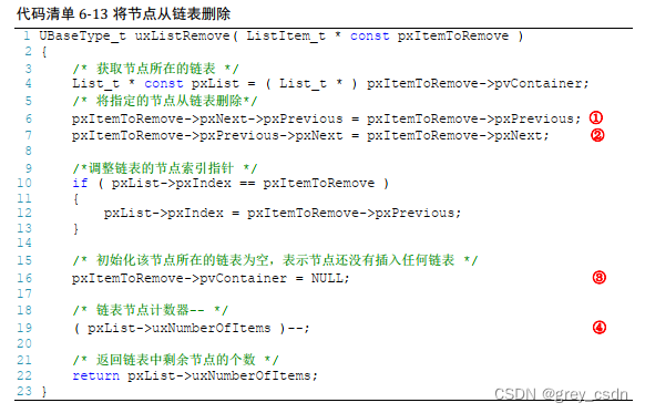 代码中还增加了一个pxIndex的处理,这个也是围绕现在的数据结构所作的特殊处理。主要是考虑到移除的节点是List最后一个节点的情况。