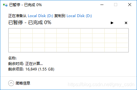上面是暂停之后的状态,如果是要继续执行这个操作只需要点击上面截图中的三角符号。如果多个复制功能同时进行的时候,这种功能还是很有改进性的体验。