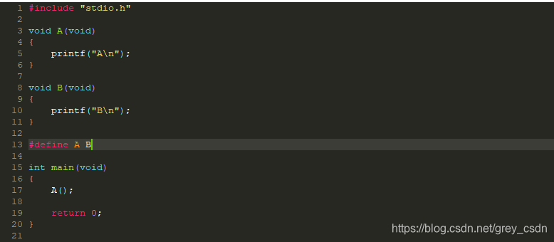 编译并不会出现错误,而是由于第13行代码的存在运行中函数A被B覆盖掉。