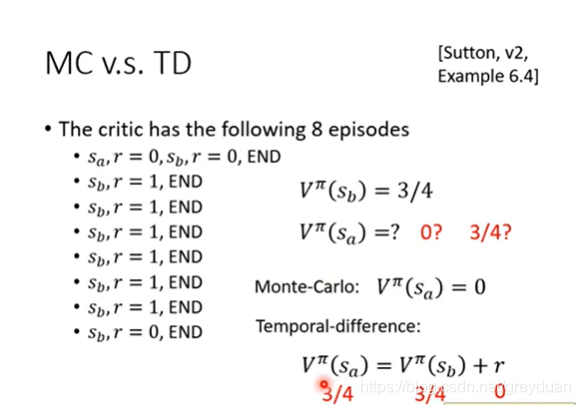 接下来放一个示例,Sutton课程里采用的,能后比较好的理解MC和TD