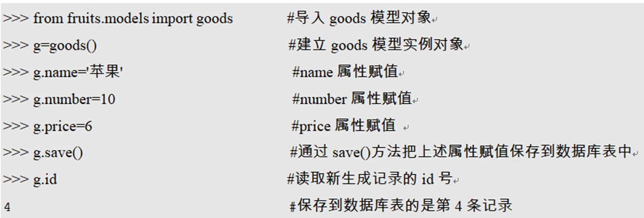 通过模型实例化对属性赋值保存或通过调用四种内置方法