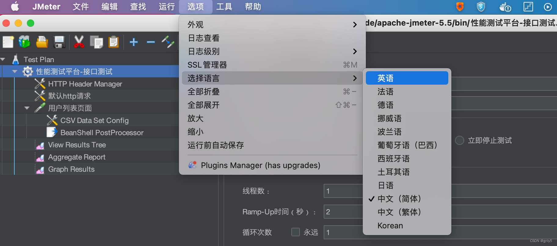 一次性的设置,重启jmeter之后还是默认的英文界面