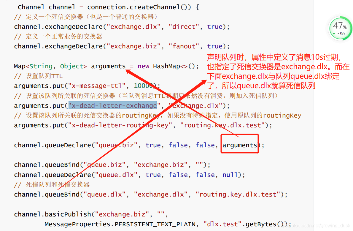 当消息过期后,就会根据指定的routingKey发送到交换机,最终根据绑定key路由到死信队列。