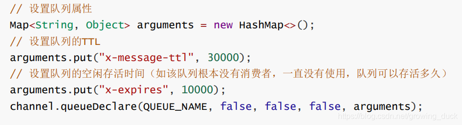 TTL机制其实就是给队列 或者 消息设置过期时间,因为中间件的容量和堆积能力有限,有一些消息长时间消费不了,可使用过期来删除。 用法如下: