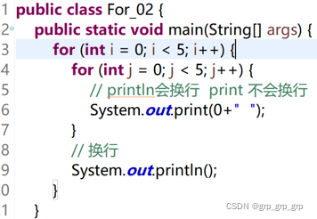 可以把外层循环看成行数,内层循环看成列数