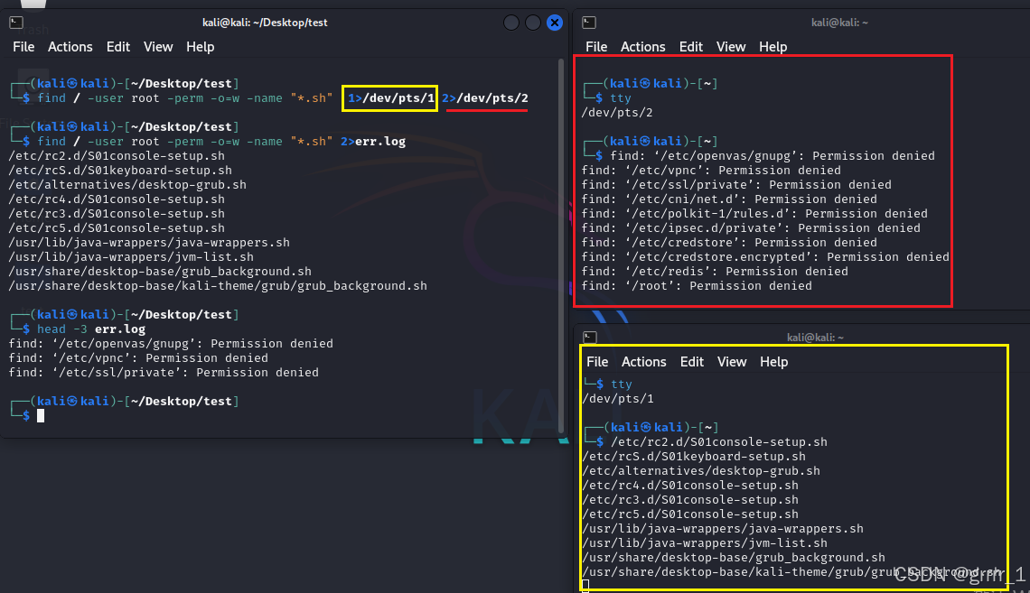这条命令是查找用户是root但是其他用户至少有写权限的sh文件,同时有许多文件夹我们无权限访问导致查找时会出错,为快速定位检索到的文件我们会选择丢弃错误信息。
