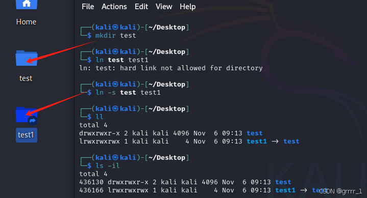 drwxrwxr-x 2 kali kali 4096 Nov 6 06:06 1