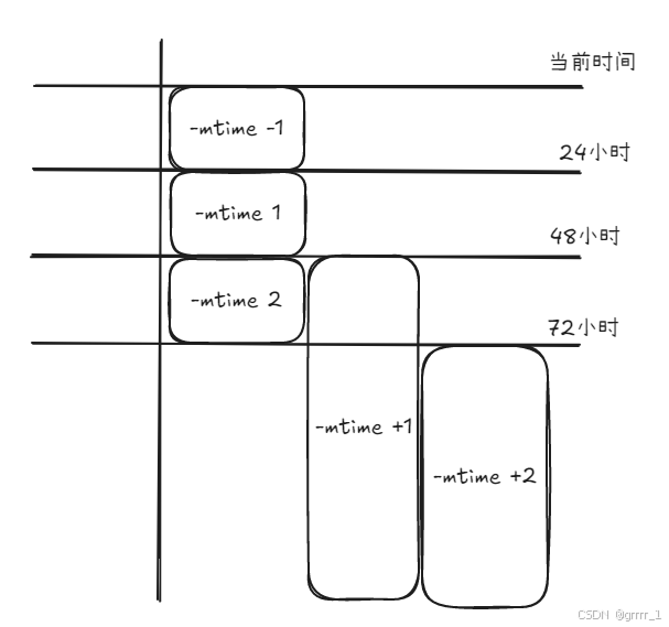 - -mtime 2 表示查找48-72小时内被修改的文件