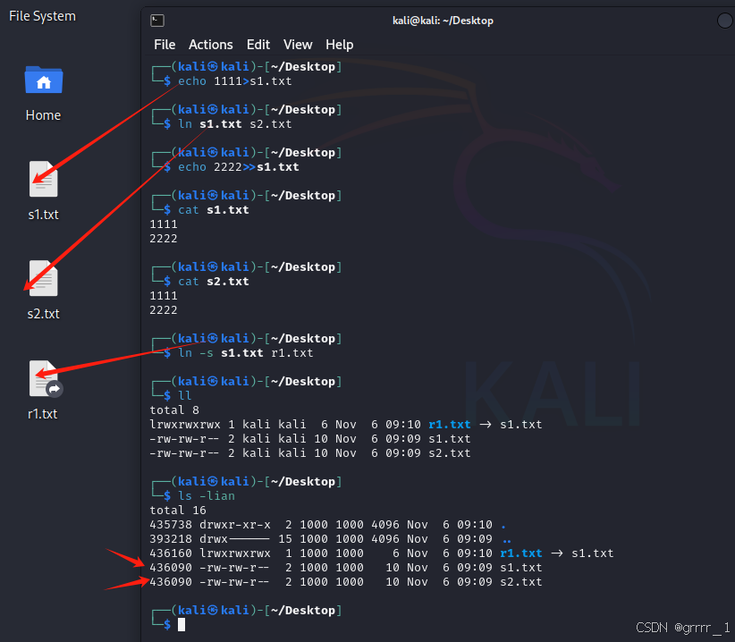 427103 0 -rw-rw-r-- 1 kali kali 0 Nov 6 18:00 ./1.txt