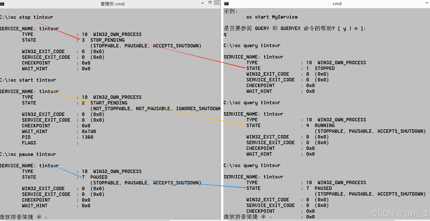 6、sc start / stop / pause 开启 / 停止 / 暂停服务