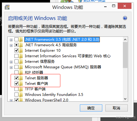找到 Telnet 服务端,勾上,点确认,然后等其安装完毕。