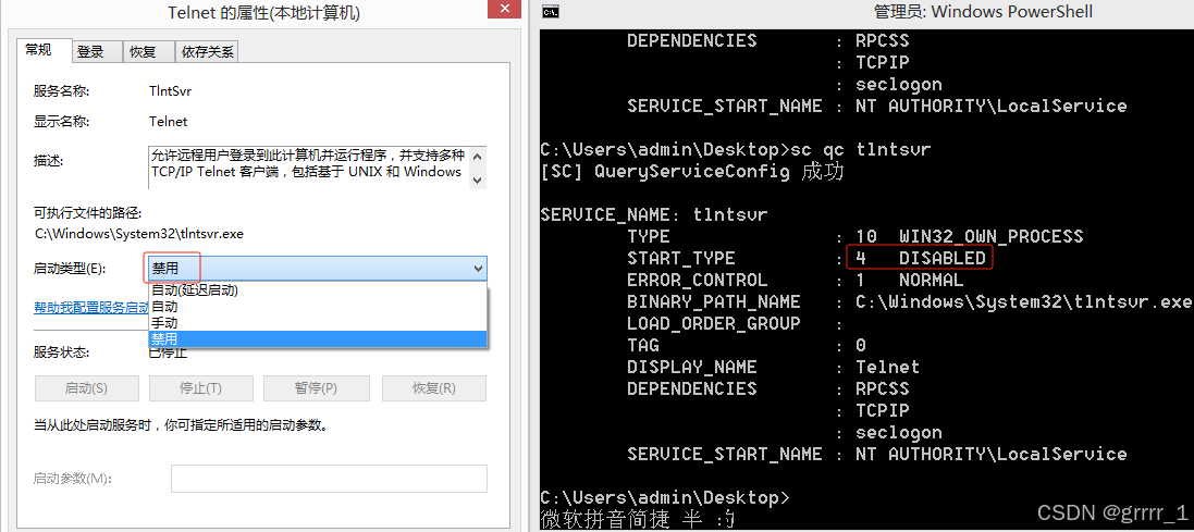另外值得注意的是,如果 start_type 为 disabled 也就是禁用状态的话,无论是 sc start / net start 都无法启动服务。