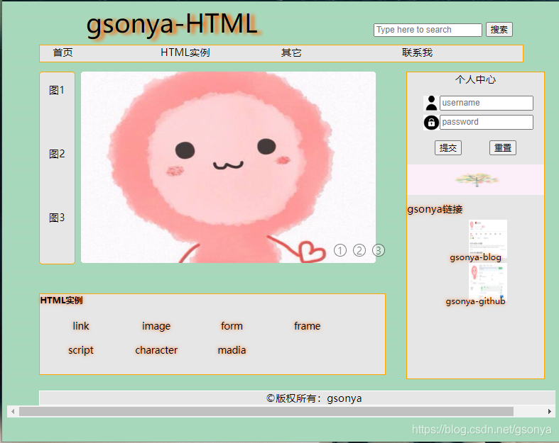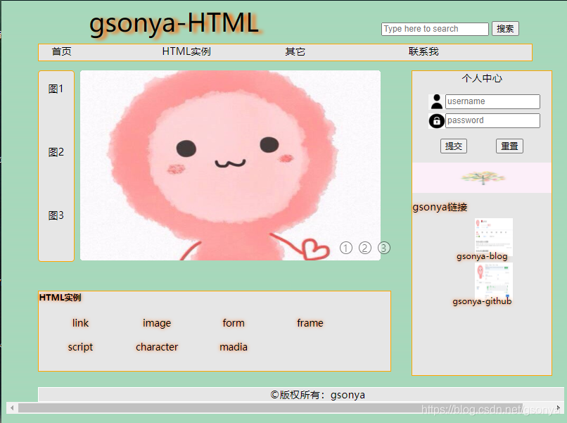HTML实例下面的每个都是实例链接,点击文字就可以展示之前博客web-HTML学习笔记里的内容。