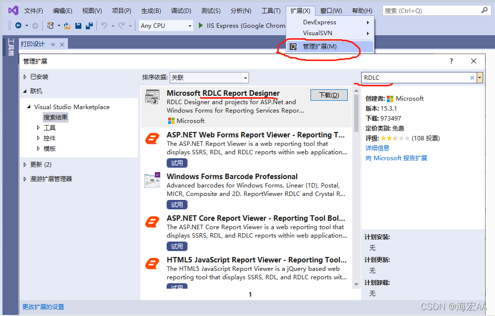 项目中需要使用正版报表工具,因此排除了fastreport、reportmachine和水晶报表等。转向微软的RDLC报告设计器,它是VS2019推广的一种报表格式,源自RDL。RDLC有两种设计器,一种嵌入在Visual Studio中,另一种独立运行。提供了打包好的下载链接,方便获取RDLC相关资源。