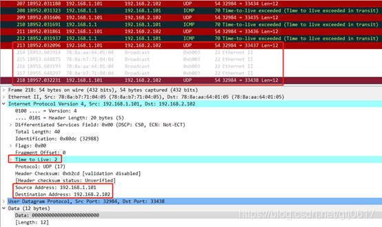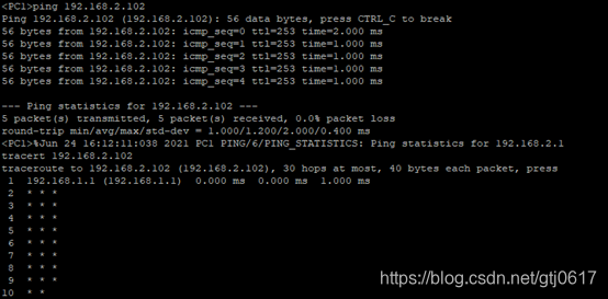 通过抓包可以发现,RT2没有回应TTL超时的ICMP错误消息,应该是没有接口响应吧。