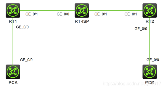 实验原型借鉴H3C典型配置“采用手工方式建立保护IPv4报文的IPsec隧道”,https://www.h3c.com/cn/d_202103/1390179_30005_0.htm#_Toc65521983。
