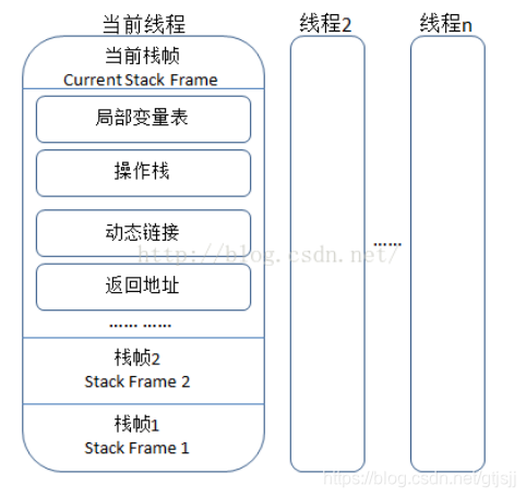 2)每个方法在执行的同时都会创建一个栈帧(Stack Frame),用于存储局部变量表、操作数栈、动态链接、方法出口等信息。