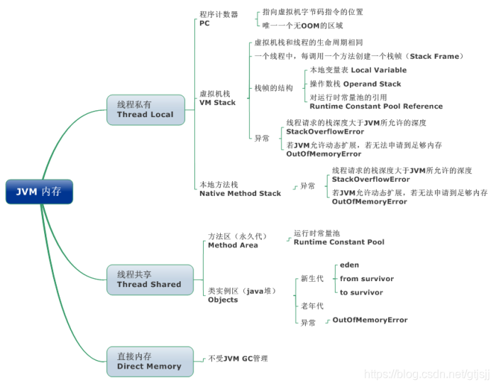 - 1.JVM内存区域包括线程私有区域,线程共享区域和直接内存